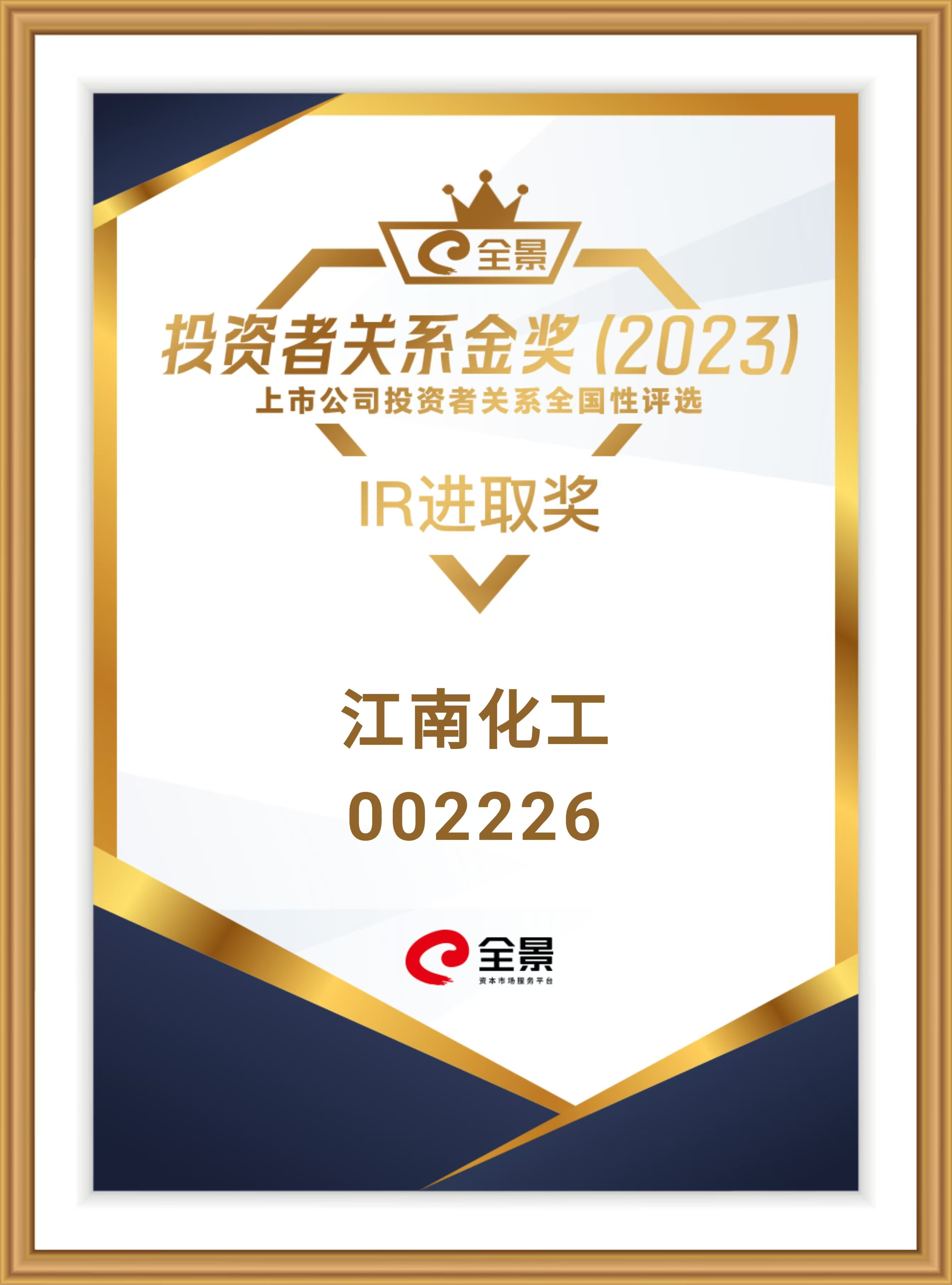 365在线体育投注官网,beat365在线体育化工荣获第五届全景投资者关系“杰出IR进取奖”